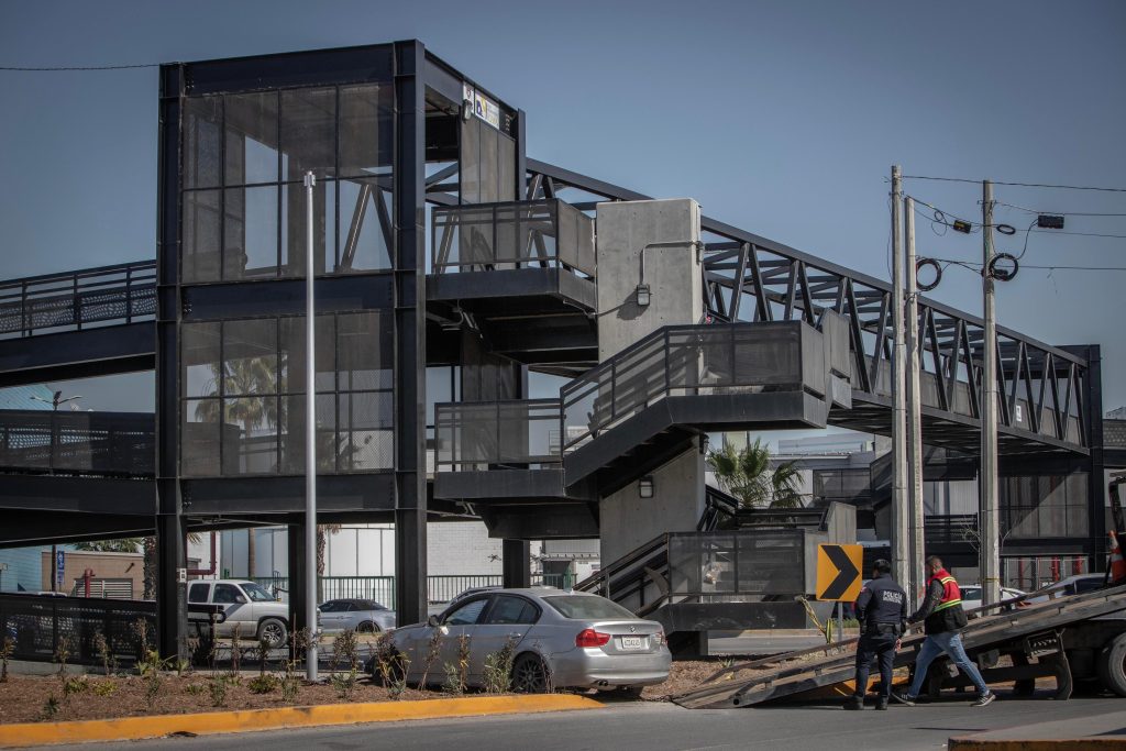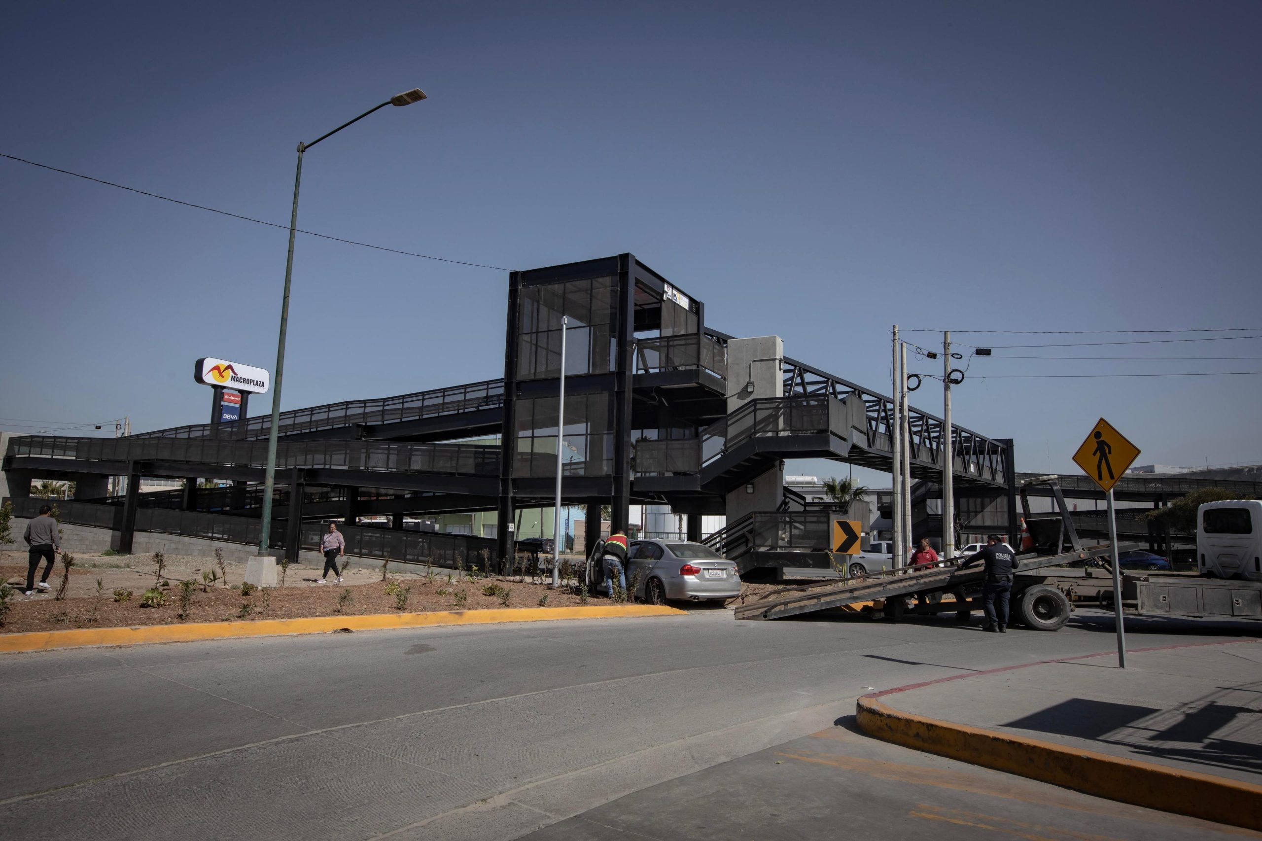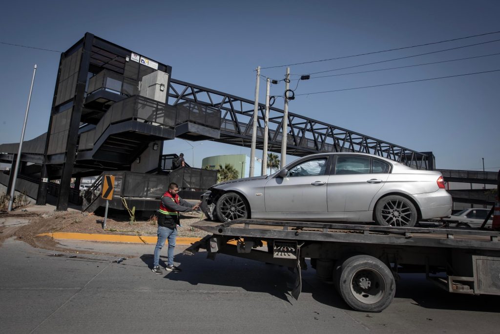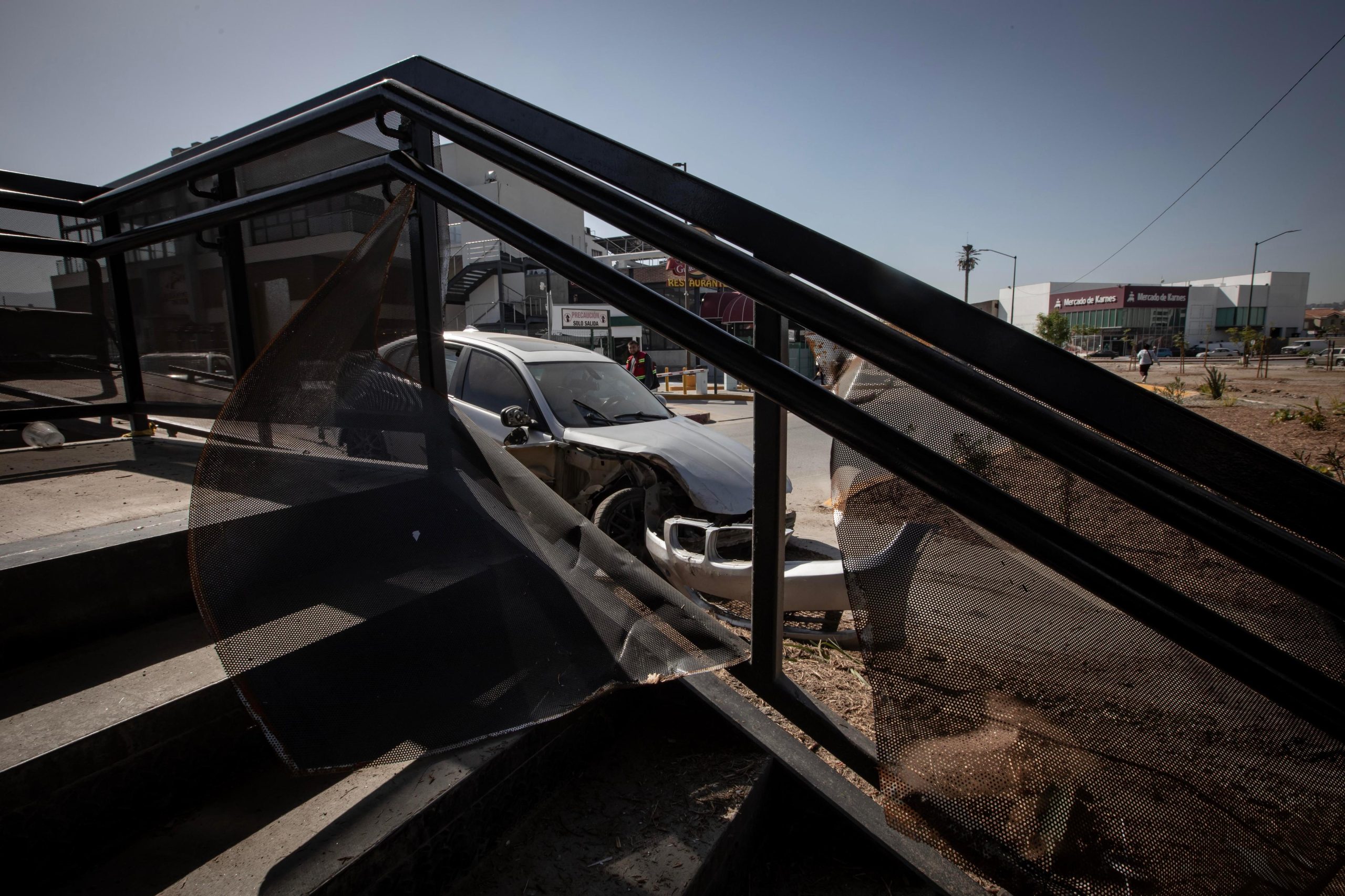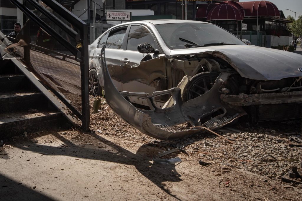 Tras el primer percance, el conductor huyó del lugar a bordo de un BMW gris con placas de California. Sin embargo, su intento de escape culminó cuando perdió el control del vehículo e impactó contra la estructura del nuevo puente peatonal ubicado frente a la Macroplaza.