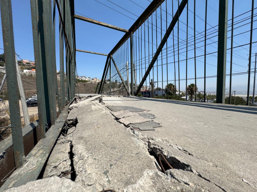 Frente a la delegación Sánchez Taboada, justo en el acceso a la colonia Camino Verde, se encuentra un puente peatonal que, aunque indispensable para cientos de personas que transitan diariamente, lleva alrededor de cinco años en condiciones precarias.