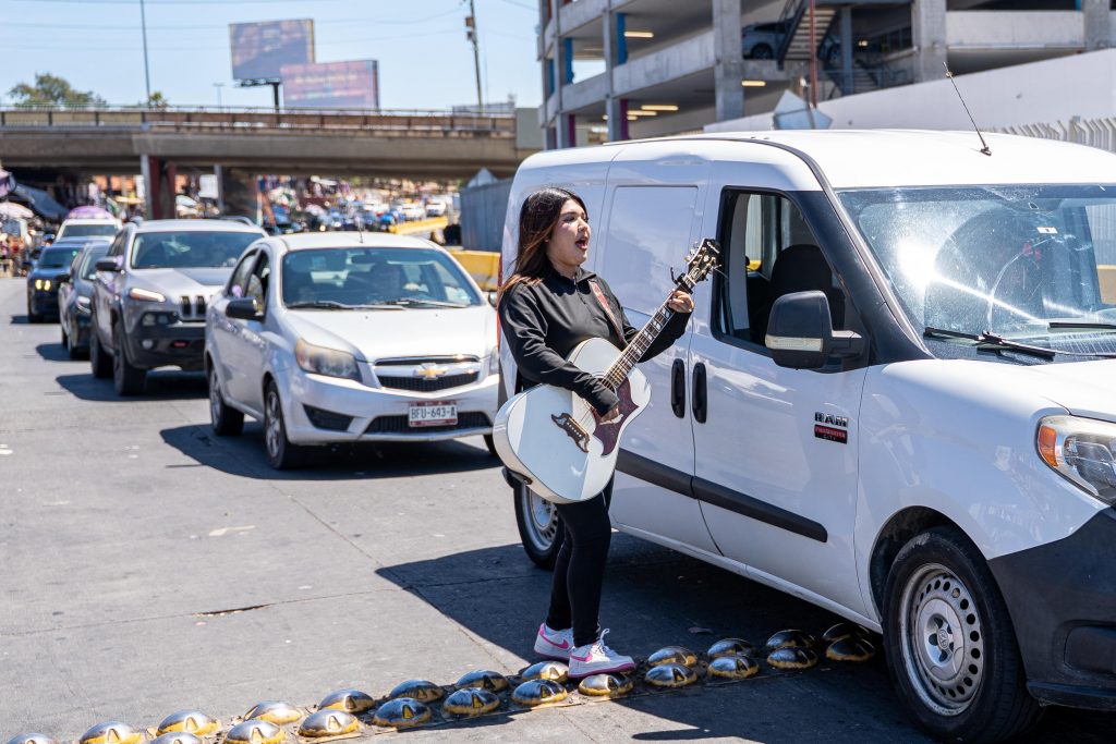 Con guitarra en mano y una voz que transmite emoción, Kimberley Vázquez ha convertido la línea de San Ysidro en un escenario inesperado. La joven tijuanense interpreta canciones a petición de los automovilistas que esperan cruzar hacia Estados Unidos, regalando momentos de compañía y nostalgia en medio de la rutina fronteriza.