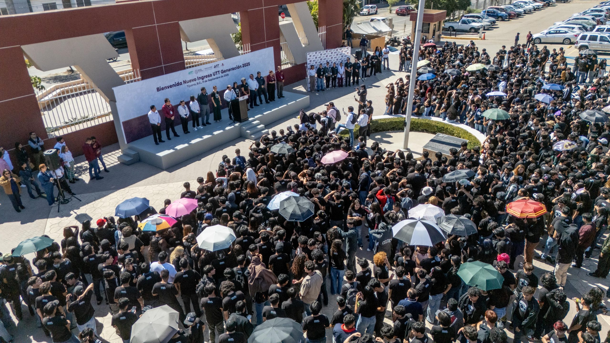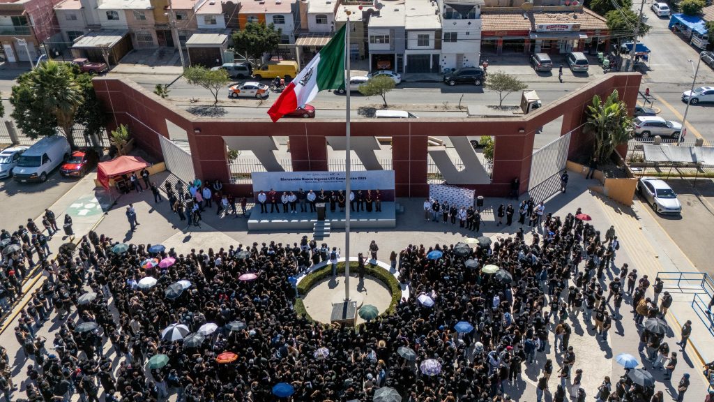 En la explanada de la Universidad Tecnológica de Tijuana (UTT) se realizó este jueves la ceremonia de bienvenida al ciclo escolar 2025, donde se presentó oficialmente a la primera generación de la carrera de Microelectrónica y Semiconductores.