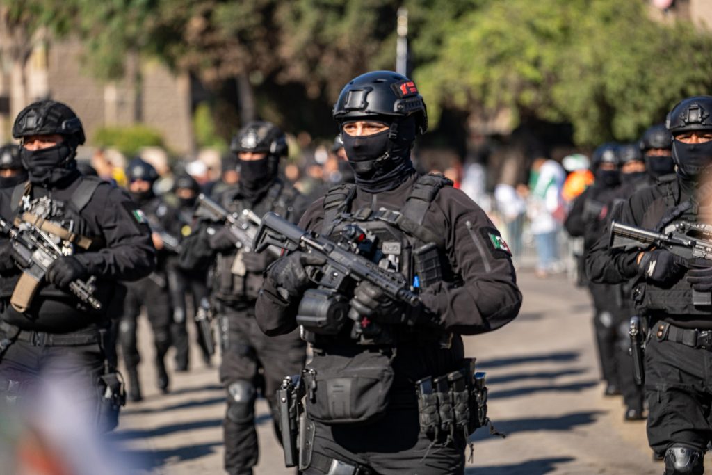 La Secretaría de Seguridad Pública de Tijuana participó con su escolta femenil, banda de guerra y los distintos distritos de la Policía Municipal que portaron los estandartes de sus zonas, desde el Distrito Centro hasta Santa Fe y Florido Mariano.