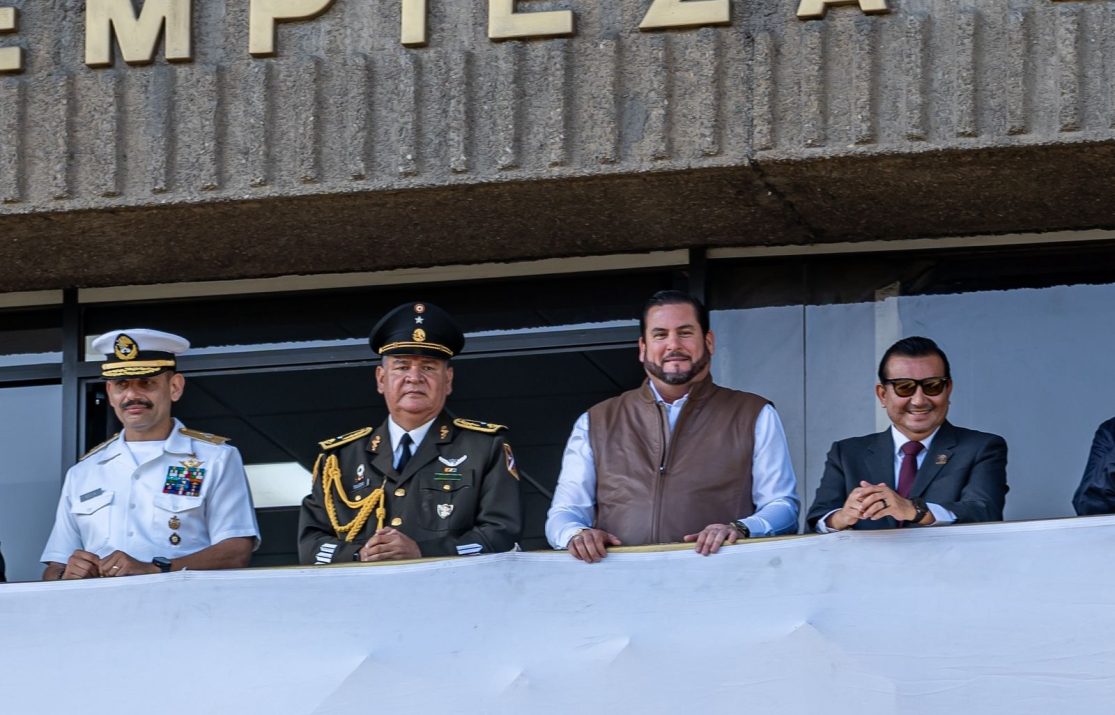 El alcalde Ismael Burgueño Ruiz presenció el desfile desde el balcón del Ayuntamiento de Tijuana, acompañado de su gabinete, disfrutando de una vista privilegiada del Paseo de los Héroes.