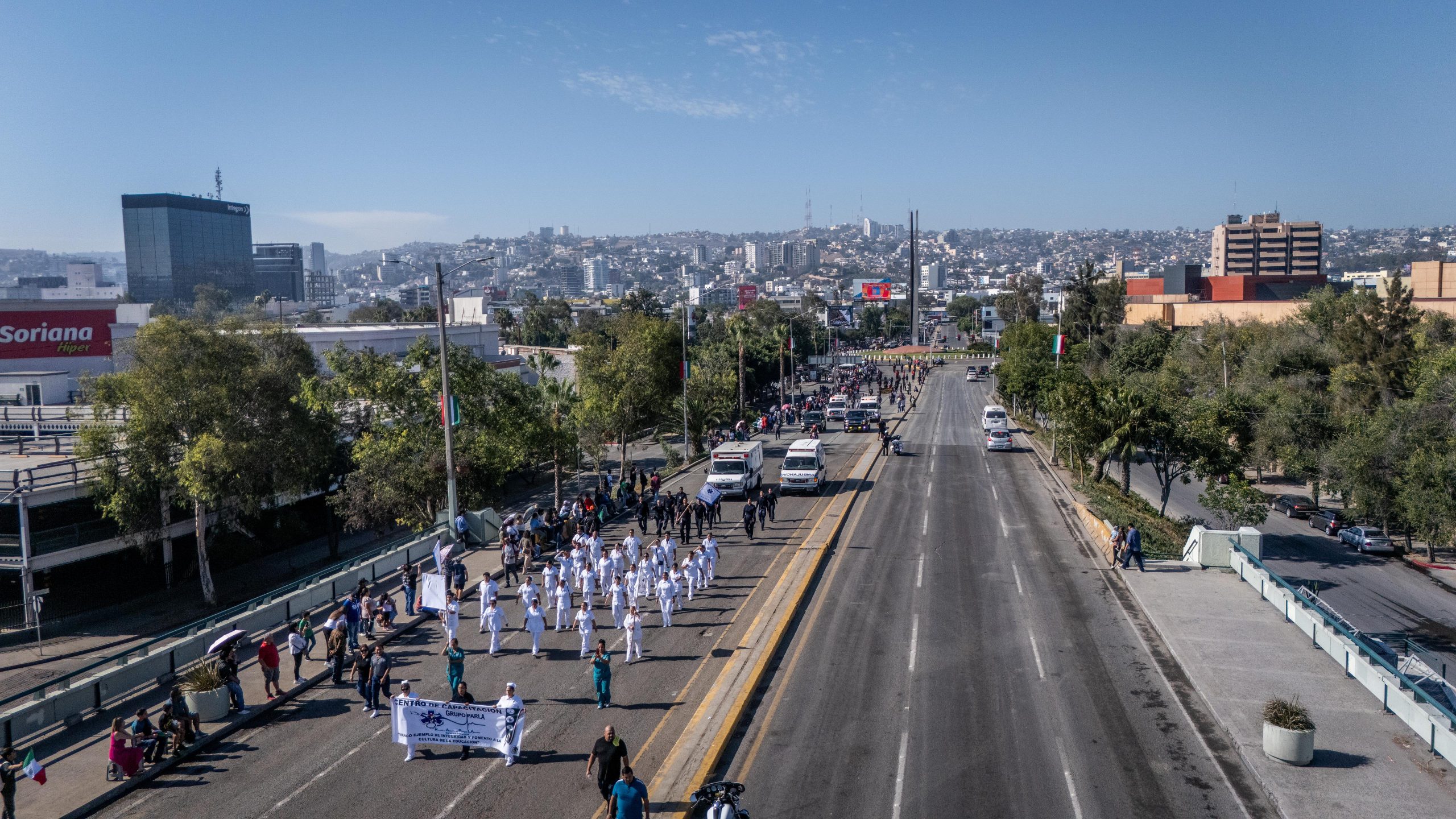 Uno de los momentos más emotivos fue el paso de elementos de la Dirección de Bomberos de Tijuana, la Protección Civil de Tijuana y la Cruz Roja Mexicana, quienes recibieron muestras de reconocimiento por su labor al salvaguardar vidas y bienes de la comunidad.