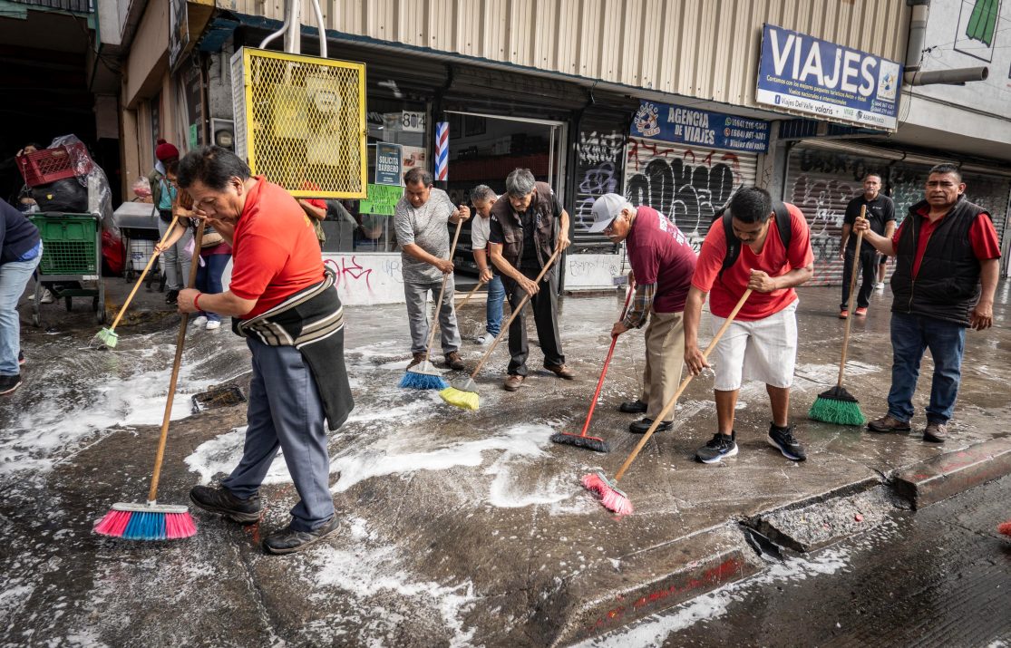 Comerciantes de la Zona Centro realizaron una jornada de limpieza en las principales calles de este sector, con el propósito de mejorar la imagen del área y atender las quejas constantes de visitantes por los malos olores.