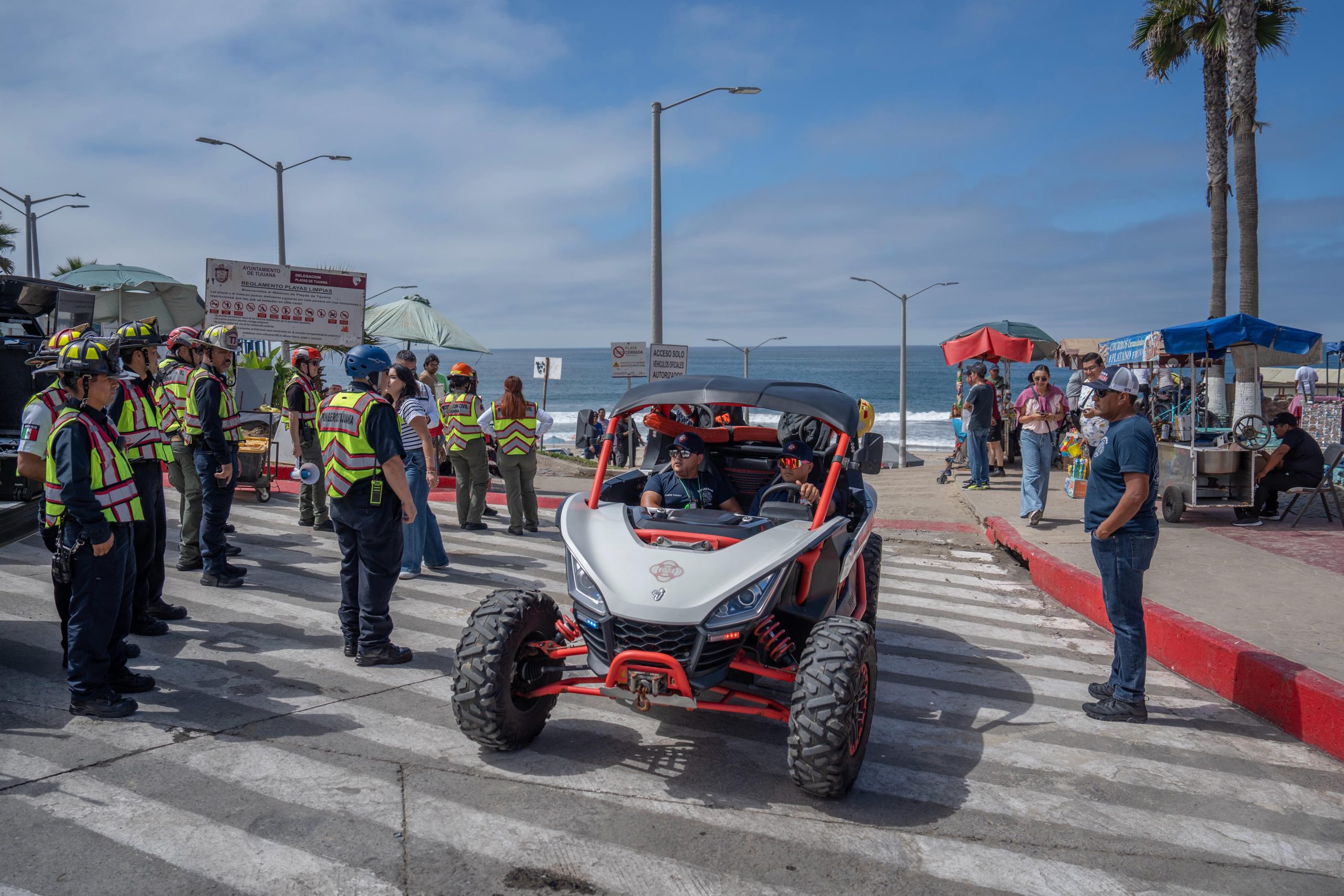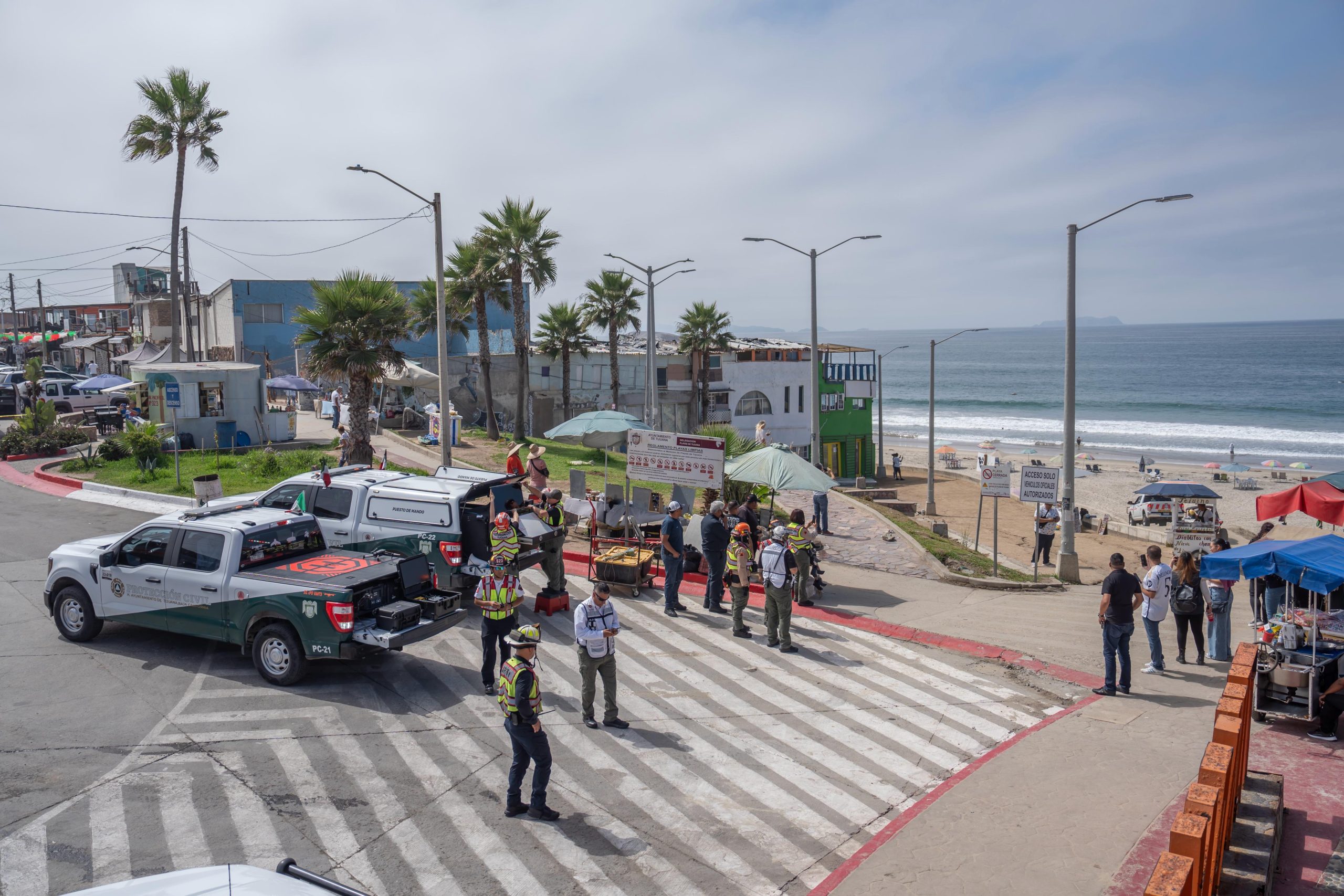 Autoridades municipales llevaron a cabo el primer simulacro de tsunami en la zona costa de Playas de Tijuana, como parte de las actividades para conmemorar el 40 aniversario del sismo de 1985 en la Ciudad de México.