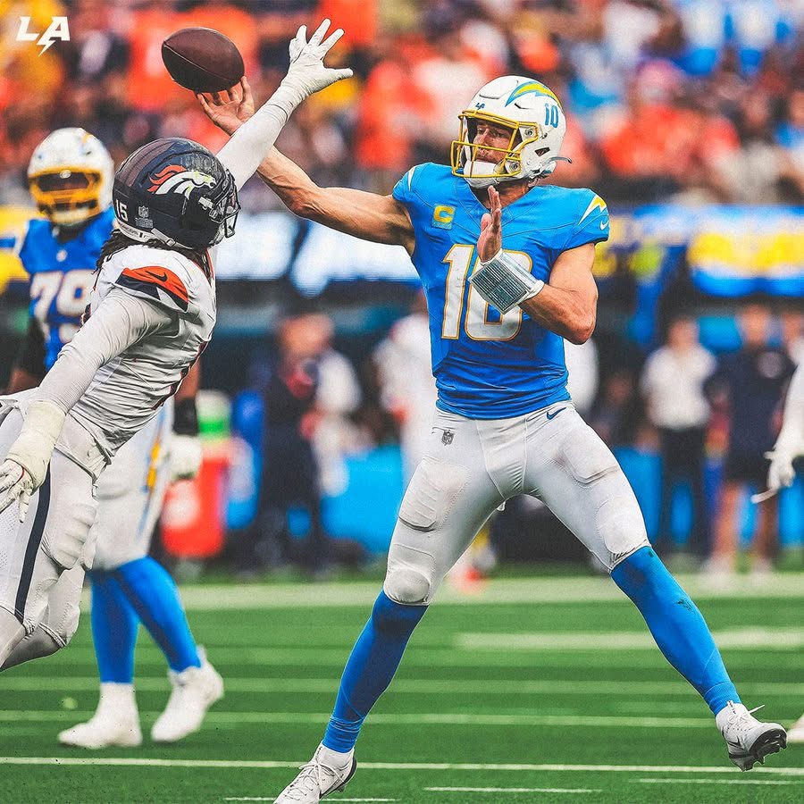 Los Angeles Chargers vencieron 23–20 a Denver Broncos el pasado domingo 21 de septiembre de 2025 en el SoFi Stadium (Inglewood), con un gol de campo de 43 yardas de Cameron Dicker en la última jugada. Justin Herbert obtuvo 300 yardas y conectó un pase de 20 yardas con Keenan Allen para empatar a 2:44 del final. Con el resultado, los Chargers firmaron inicio perfecto de 3–0 por primera vez desde 2002.