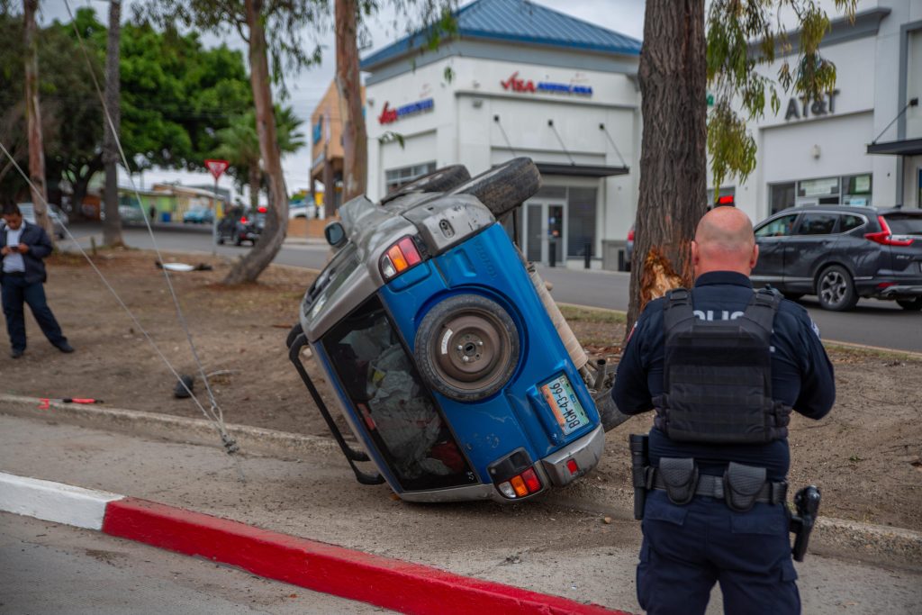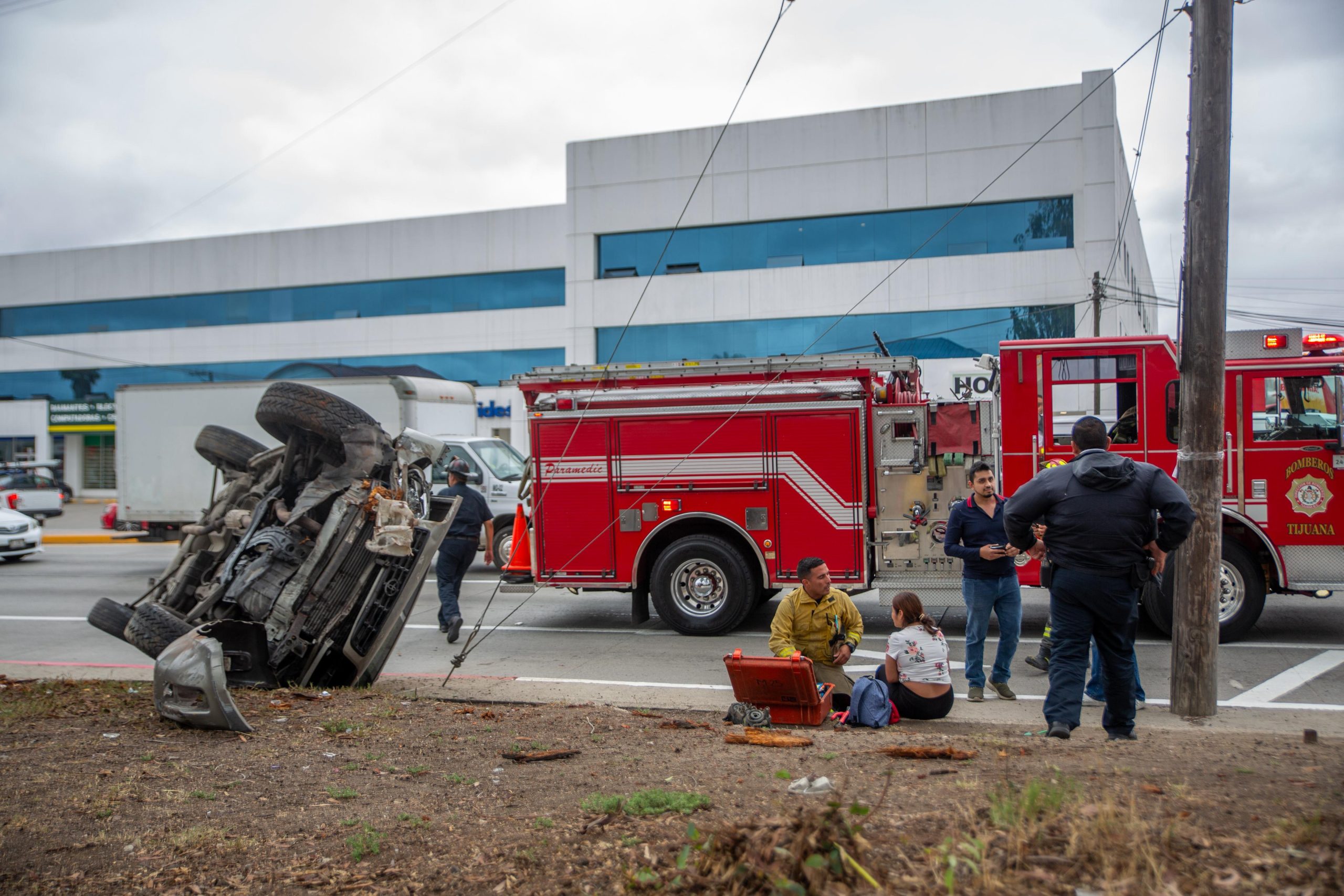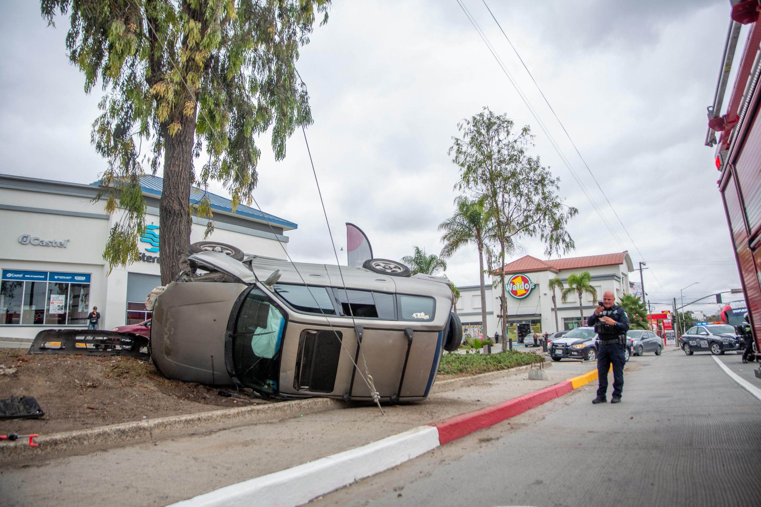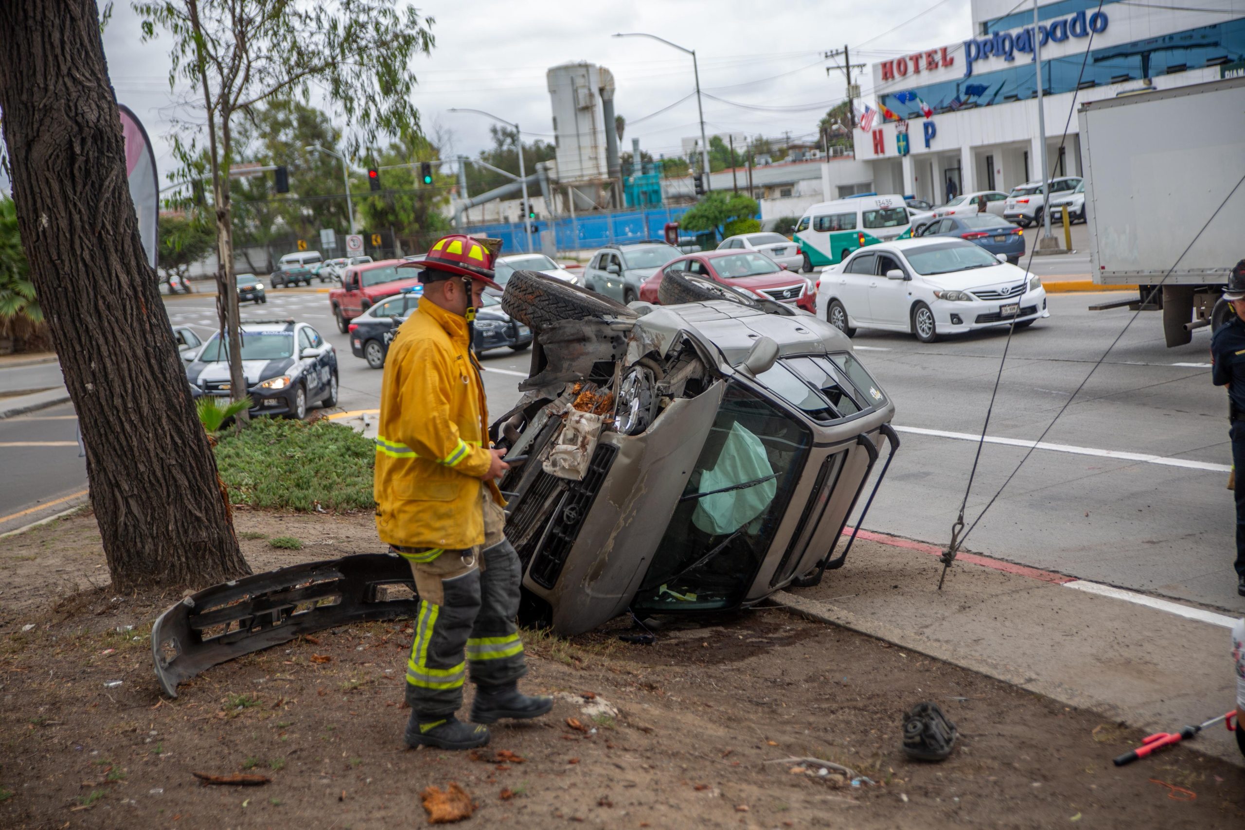 La tarde de este viernes se registró un accidente vial sobre el bulevar Cuauhtémoc Norte, en dirección al Aeropuerto, a la altura de la desviación hacia la colonia 70-76, donde una camioneta Toyota azul con placas de Baja California terminó volcada.