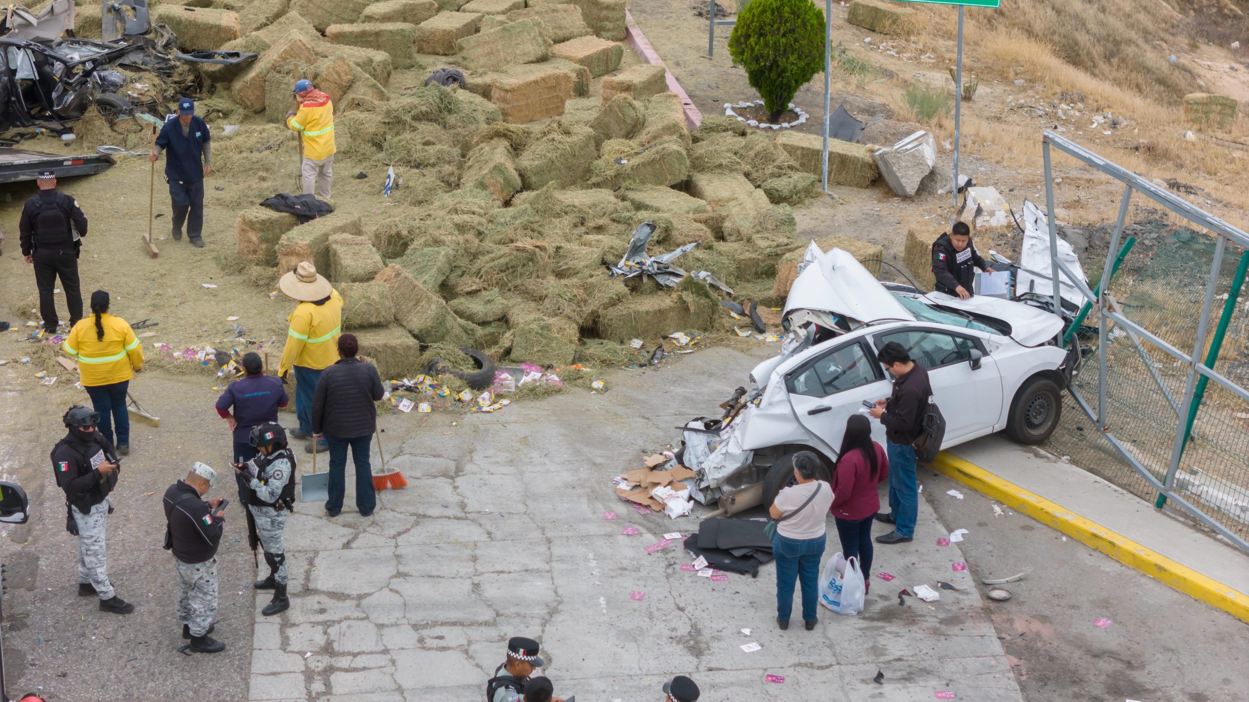 De acuerdo con los primeros reportes, el tractocamión aparentemente se quedó sin frenos, colisionando con automóviles particulares y otro tráiler de doble plataforma que transportaba alfalfa. El incidente ocurrió poco antes de las 09:00 horas, a la altura del kilómetro 92+105, en la colonia Luis Echeverría Álvarez (El Hongo).
