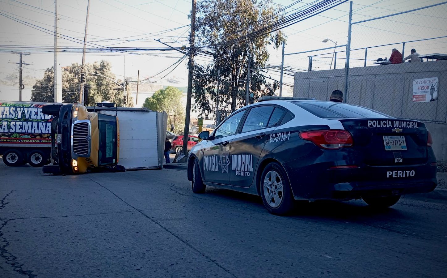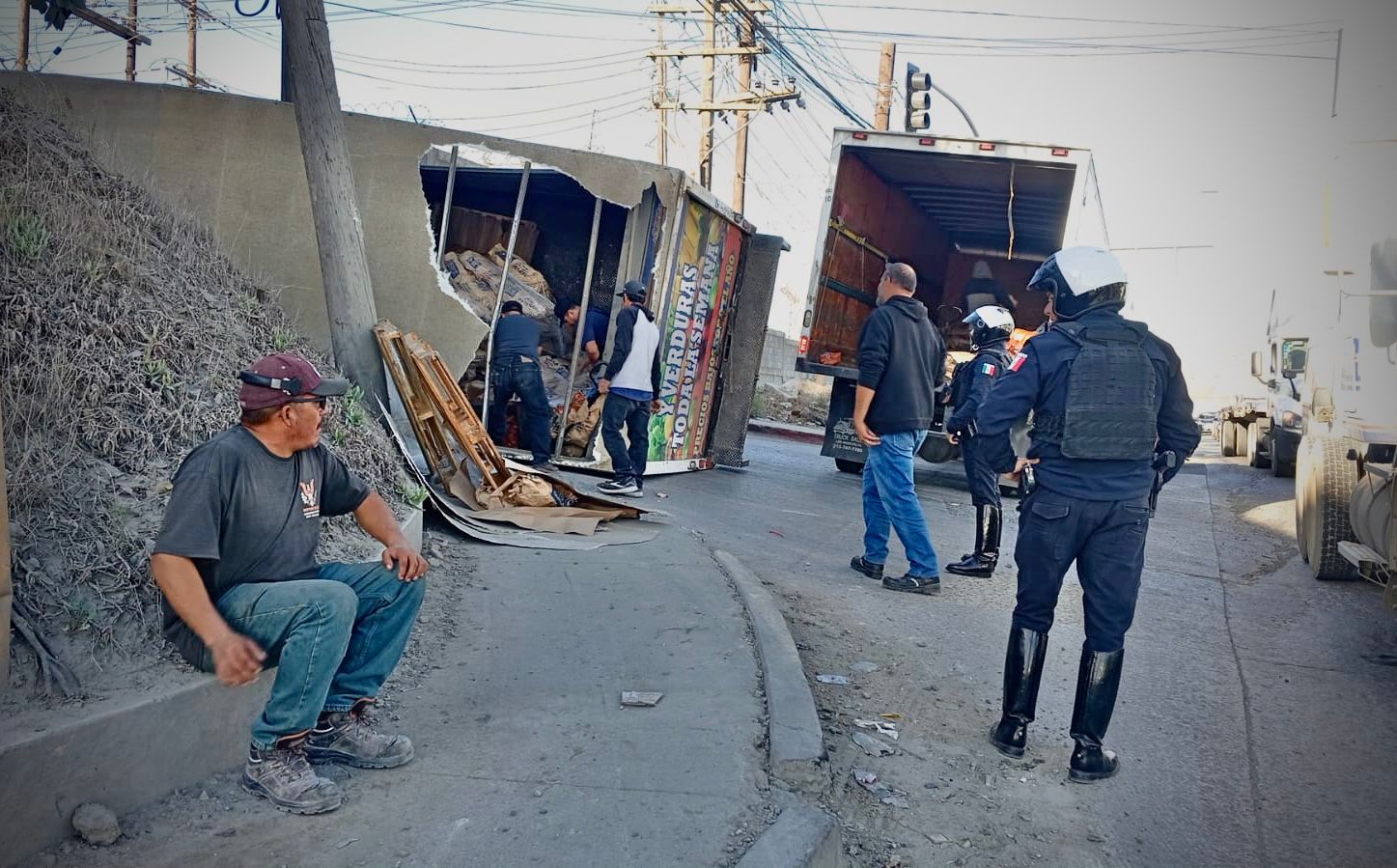 Un camión de carga que transportaba costales de papas volcó durante la mañana de este lunes en la entrada a El Realito y Valle Bonito, lo que ocasionó el cierre parcial de la carretera libre Tijuana-Tecate y afectaciones al tránsito en dirección al bulevar 2000.