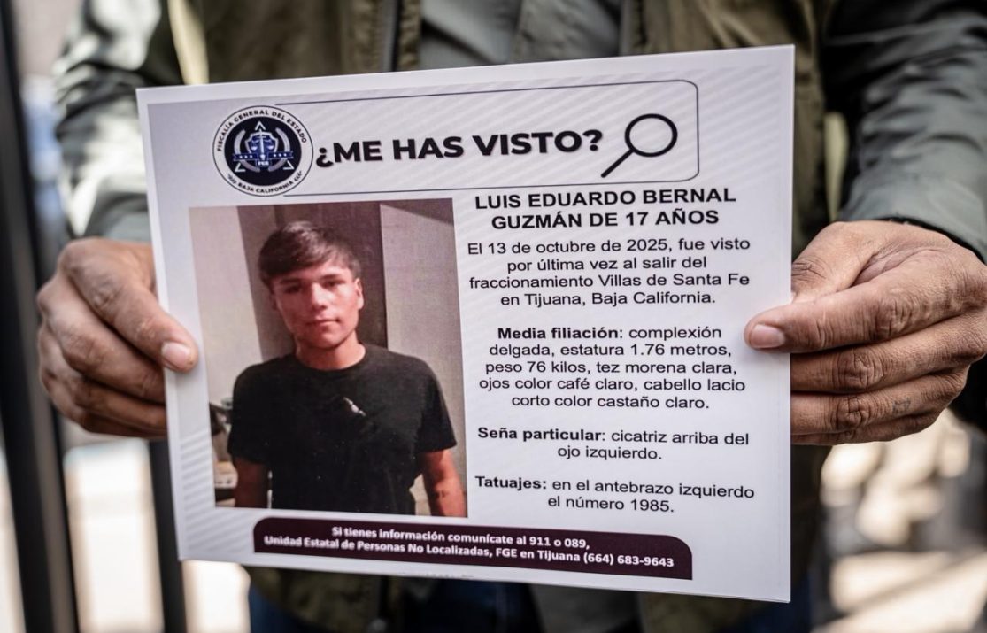 Los padres de Luis Eduardo Bernal, un joven de 17 años desaparecido desde el pasado 13 de octubre, recorren las calles de Tijuana para continuar con su búsqueda y pedir apoyo de la comunidad para dar con su paradero.