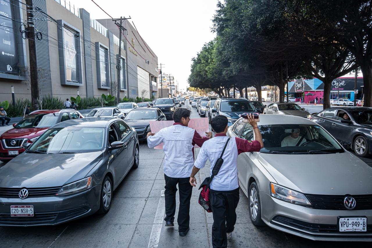 Con creatividad y esfuerzo, Mario Alberto Valenzuela y Raúl Vázquez, estudiantes de gastronomía de la Universidad Vizcaya de las Américas, emprendieron la venta de aguas frescas embotelladas en el crucero ubicado frente al Centro de Atención a Solicitantes (CAS), con el propósito de reunir fondos para viajar a Francia, donde realizarán sus prácticas profesionales.