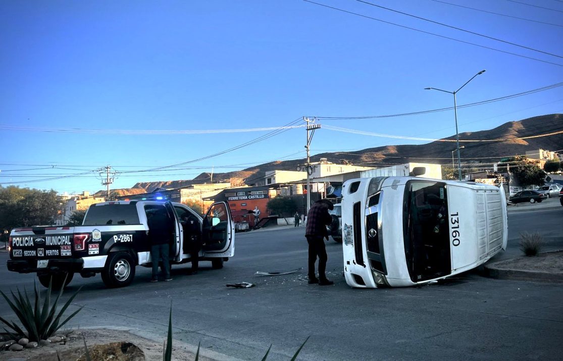 Un accidente ocurrido la mañana de este jueves en el cruce del bulevar García y bulevar Natura, en el fraccionamiento Natura, provocó la volcadura de un taxi de ruta y dejó dos conductores con lesiones leves.