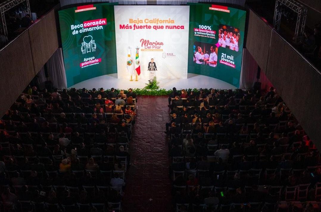 Durante la presentación de su Cuarto Informe de Gobierno, la gobernadora Marina del Pilar Ávila Olmeda anunció la creación de la Beca Corazón de Cimarrón, una iniciativa que cubrirá el 100% de los costos de inscripción y reinscripción para estudiantes de la Universidad Autónoma de Baja California (UABC) en situación de vulnerabilidad.
