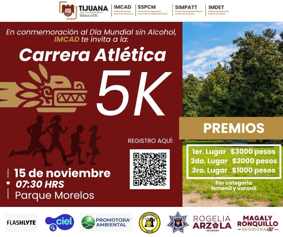 El XXV Ayuntamiento de Tijuana, anunció la carrera atlética de 5 kilómetros “Avanza sin Alcohol”, que se realizará el próximo sábado 15 de noviembre a partir de las 7:30 de la mañana en el Parque Morelos, como parte de las actividades conmemorativas del Día Mundial sin Alcohol.