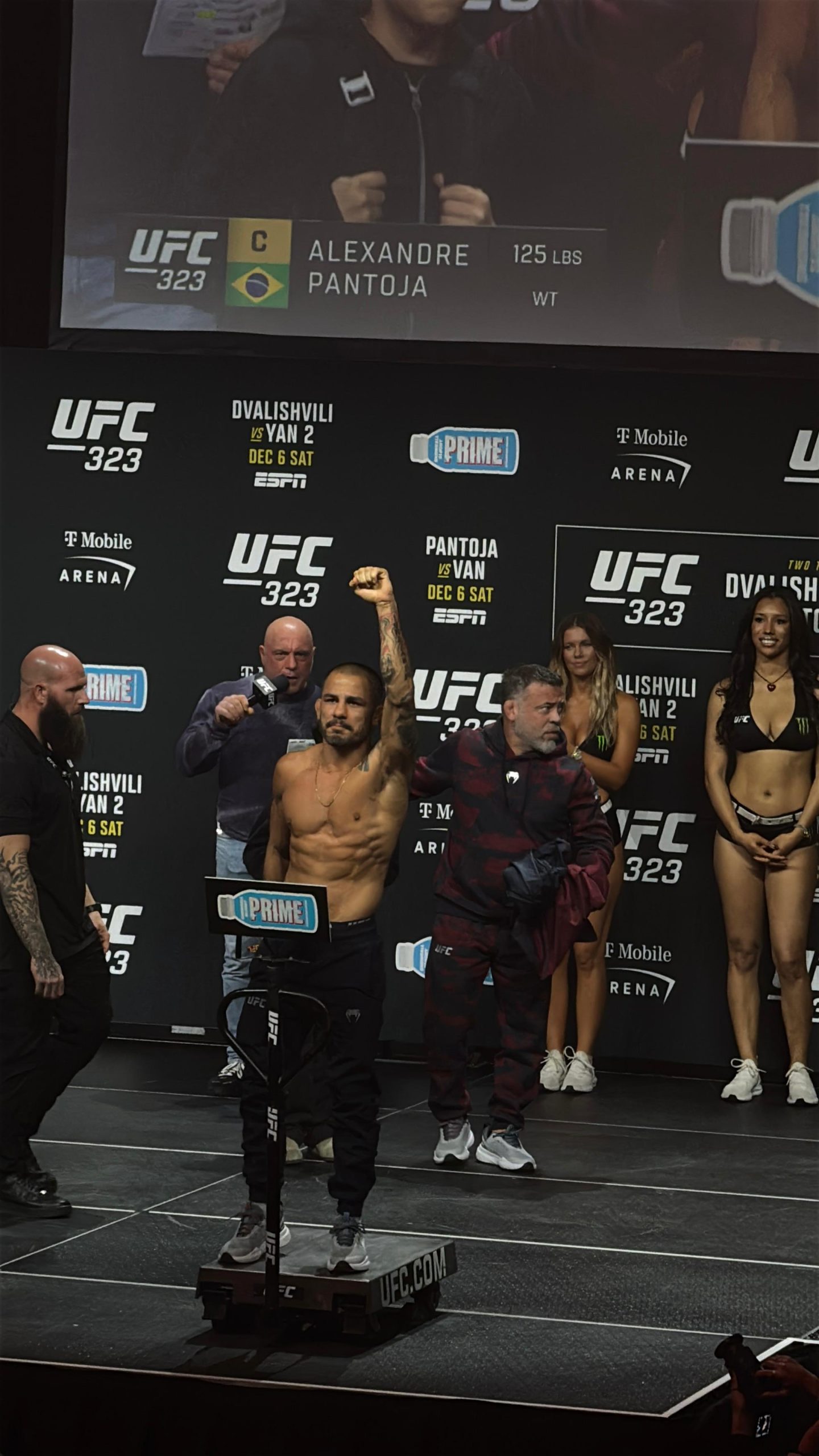 La coestelar también quedó confirmada luego de que el campeón mosca Alexandre Pantoja marcara 125 libras y su retador, Joshua Van, llegara sin problemas a las 124.5. En este duelo, la fanaticada respondió con entusiasmo ante uno de los combates más atractivos de la cartelera, una mezcla de estilos que promete dinamismo y técnica de alto nivel.