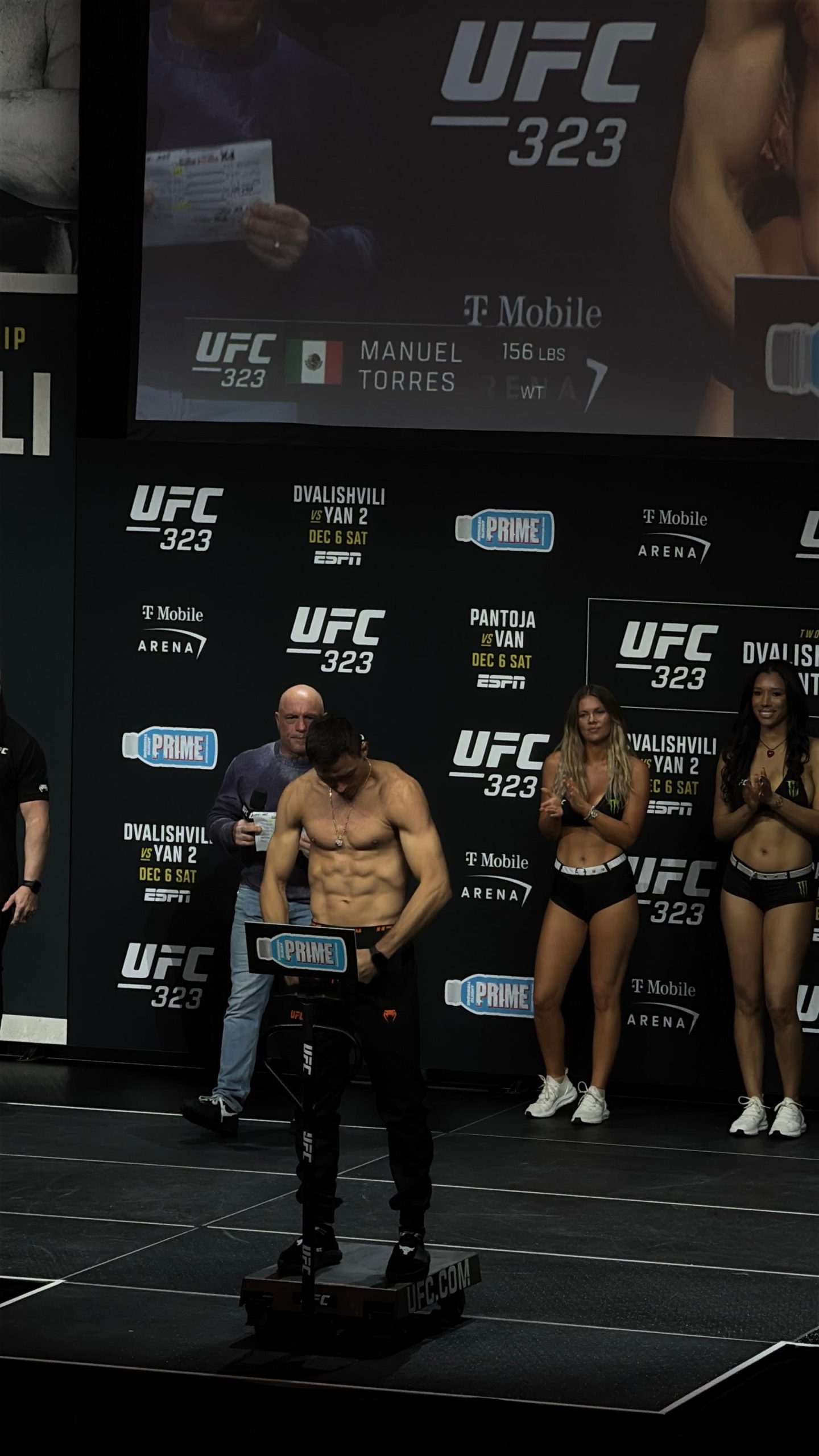 Otro momento especial para quienes viajaron desde México se vivió con Manuel “Loco” Torres, quien detuvo la báscula en 156 libras para su enfrentamiento contra Grant Dawson. El chihuahuense recibió gran apoyo de los aficionados, muchos de los cuales portaban banderas tricolores y corearon su nombre al subir al escenario. Para Torres, esta pelea representa una oportunidad importante de seguir escalando en una división que suele dar sorpresas.
