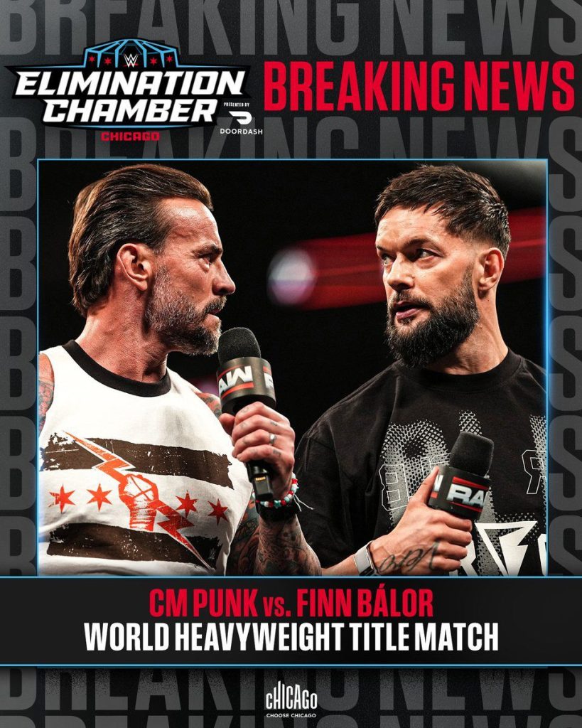 IT IS OFFICIAL ✅@CMPunk vs @FinnBalor for the World Heavyweight Championship at Elimination Chamber! pic.twitter.com/bF2SF46AwZ
