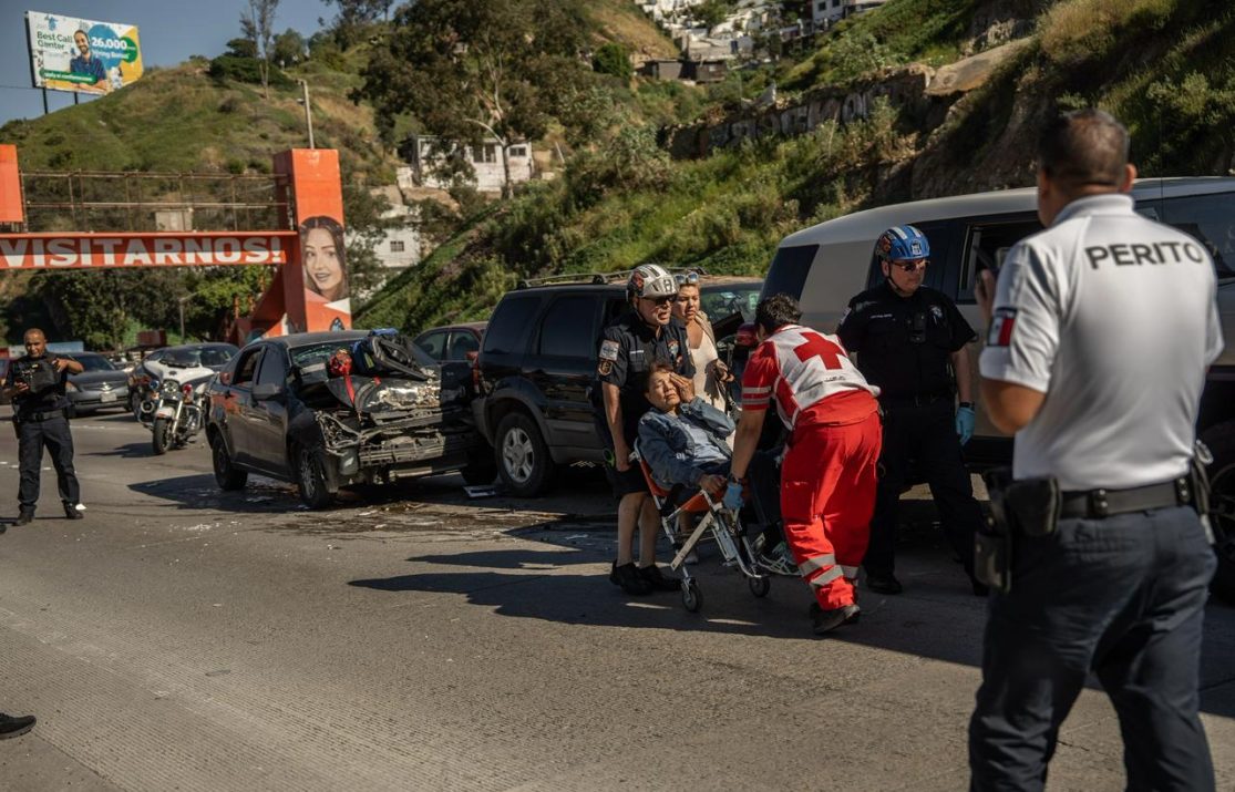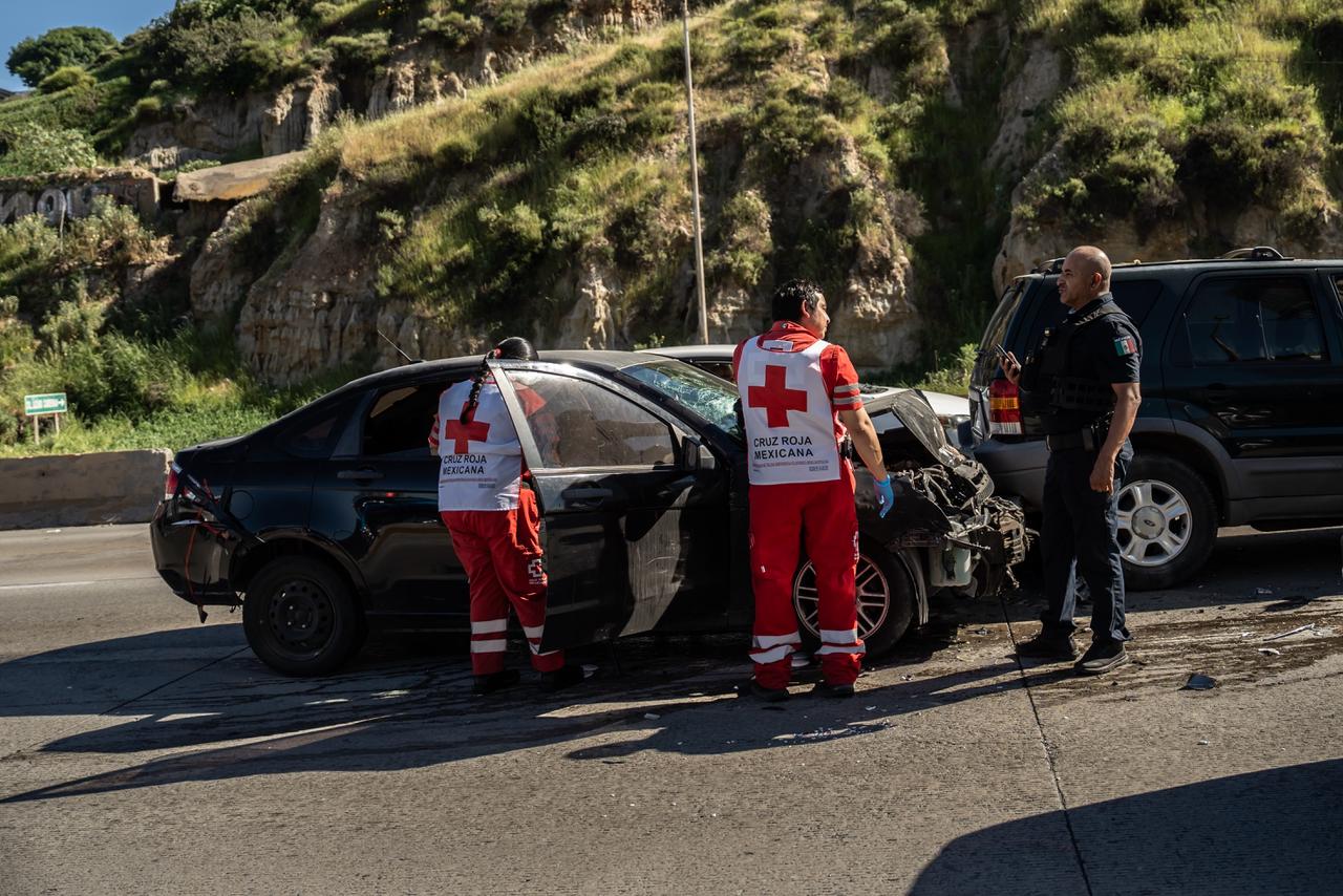 TIJUANA, B.C.– Un accidente múltiple registrado la tarde de este jueves sobre la carretera a Playas de Tijuana dejó como saldo a una mujer lesionada, además de generar afectaciones al tránsito en la zona.