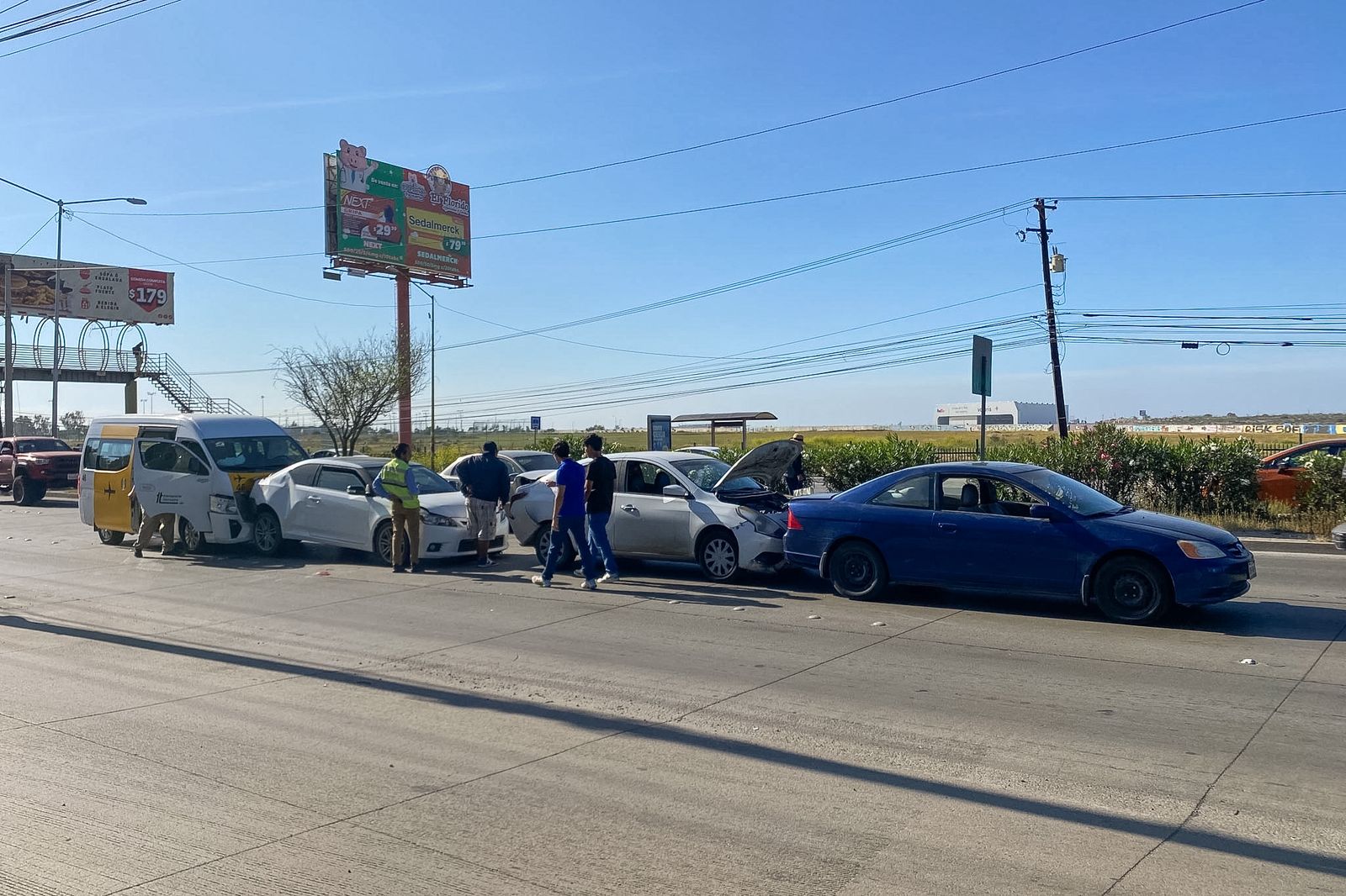 TIJUANA, B.C.– Un choque múltiple se registró la tarde de este lunes 23 de marzo sobre la Calzada Tecnológico, a la altura de la colonia La Pechuga, en dirección hacia la Clínica 36 del IMSS, sin que se reportaran personas lesionadas.
