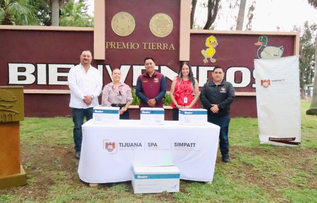 El Sistema Municipal de Parques Temáticos de Tijuana (SIMPATT) recibió la donación de 100 aspersores por parte de Industrias Hunter, equipo que será destinado a modernizar el sistema de riego del Parque de la Amistad, ubicado en la Delegación Otay Centenario.