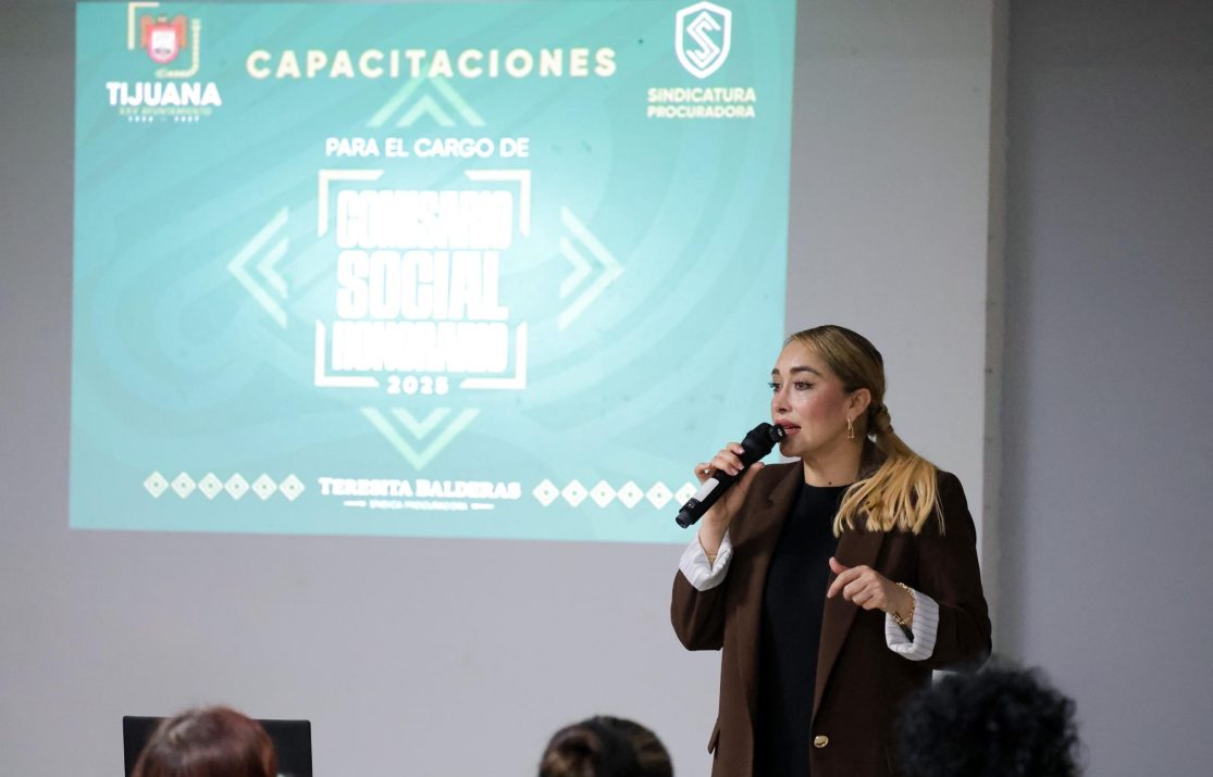 La Síndica Procuradora del XXV Ayuntamiento de Tijuana, Teresita Balderas Beltrán, encabezó una capacitación dirigida a 115 ciudadanas y ciudadanos aspirantes a Comisarios Sociales Honorarios 2026, con el objetivo de fortalecer la participación ciudadana y promover la vigilancia en la gestión pública.