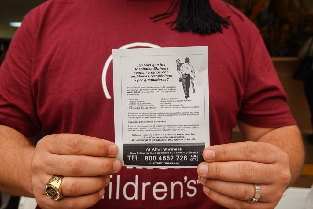 TIJUANA, B.C.– Integrantes de Shriners Children’s realizan jornadas informativas el primer lunes de cada mes en la explanada del Ayuntamiento de Tijuana, con el objetivo de orientar a familias sobre los servicios médicos gratuitos que ofrecen a menores de edad.