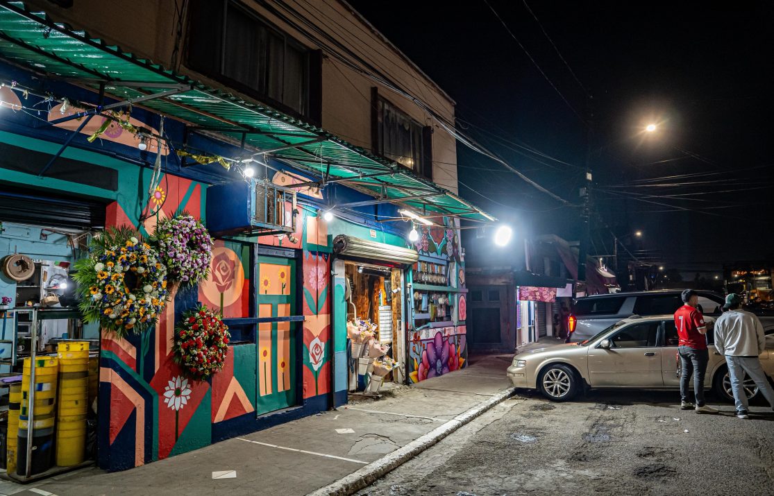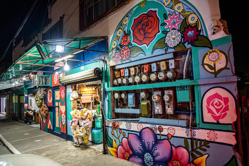 Como parte de la intervención artística, se realizaron 12 murales en cortinas metálicas de florerías, elaborados por artistas del programa Jóvenes Sembradores de Paz, entre ellos Flip, Asker Aesu y el artista local Pablo Vega, quienes plasmaron elementos representativos de la identidad de la zona.
